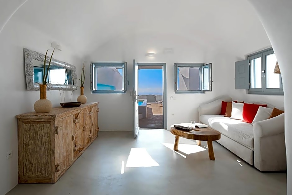 The generously appointed and luxurious suites consist of 1 bedroom and have a spacious living room with an outdoor private pool overlooking the Caldera.